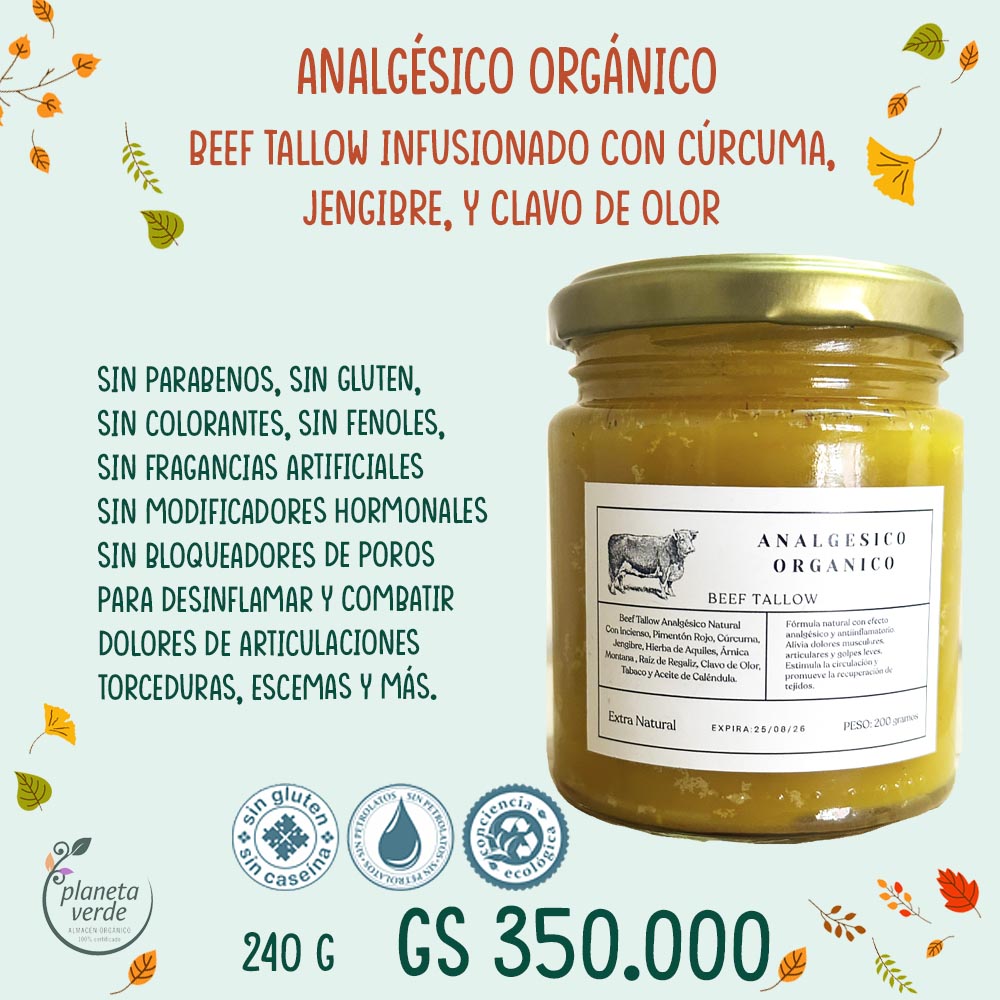 Analgésico Orgánico – Sebo de Res + Cúrcuma + Clavo de olor