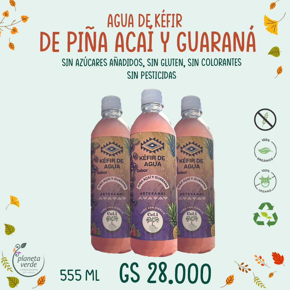 Fuente de probióticos, sin colorantes solo hecho con frutillas agroecológicas. Libre de azúcares añadidos y saborizantes artificiales. Ideal para la reconstitución de la flora intestinal. Es energizante por su composición con guaraná y antioxidante por el acaí